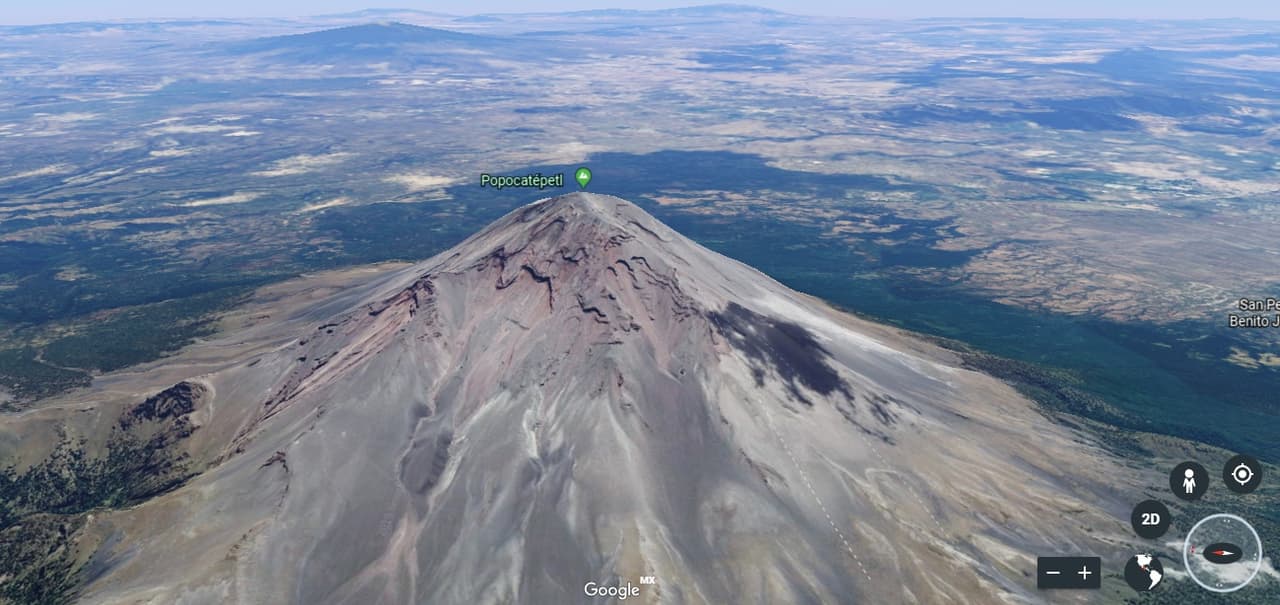 El Popocatépetl se aprecia de manera increíble en Google Earth. Es el volcán más famoso de México y se encuentra dentro de los límites territoriales de los estados de Morelos, Puebla y Estado de México.