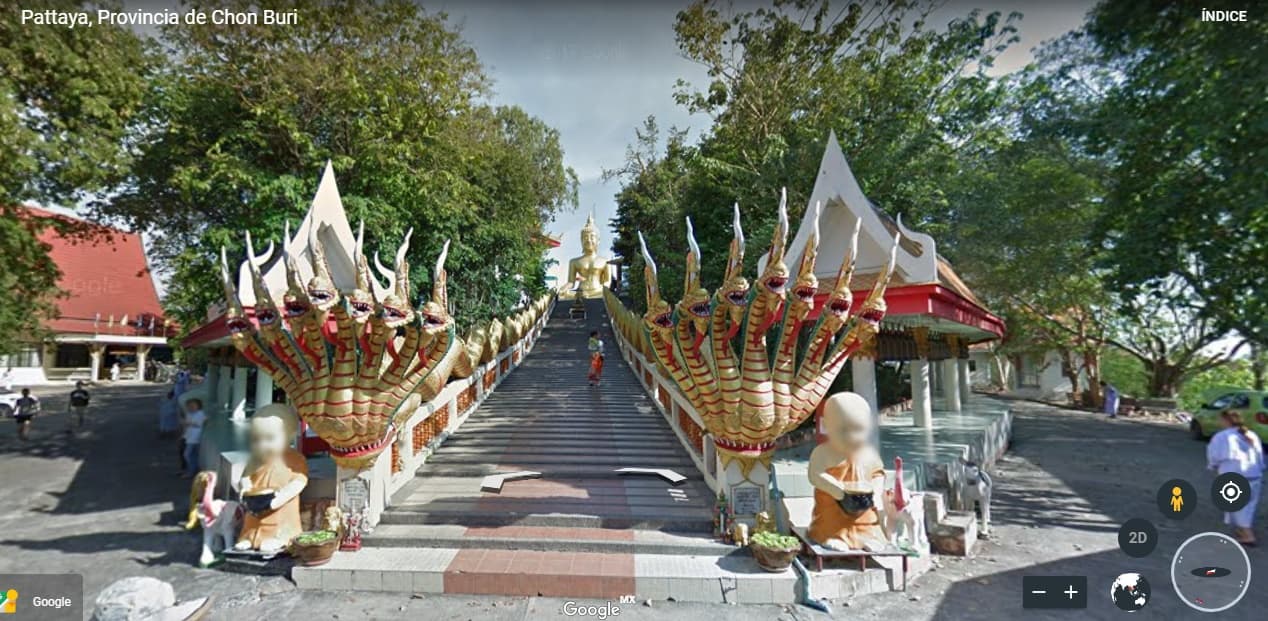 Este lugar mágico es Pattaya, una ciudad en Tailandia conocida por sus hermosas playas. Al fondo se aprecia un Buda dorado de 18 metros de altura.