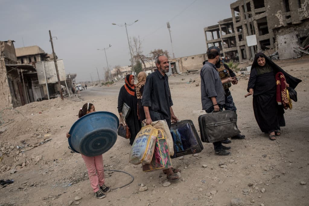 Actualmente, la Organización de las Naciones Unidas ( ONU) calcula que aproximadamente unas 2,5 millones de personas continúan desplazadas en el el territorio por la devastación sufrida durante los años de guerra contra el Estado Islámico, donde miles de civiles perdieron la vida y la ciudad quedó completamente en ruinas.