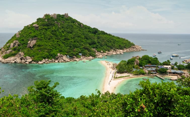 El destino favorito de viajeros relajados y mochileros en Tailandia, la isla de Koh Pha Ngan en la costa este es famosa por sus fiestas en la playa a la luz de la luna. Sus playas de hermosas aguas cristalinas y palmeras son reconocidas por disfrutar de un clima ameno y amigable, donde los viajeros más bohemios suelen darse cita tanto en la playa como en los bares y cafés.