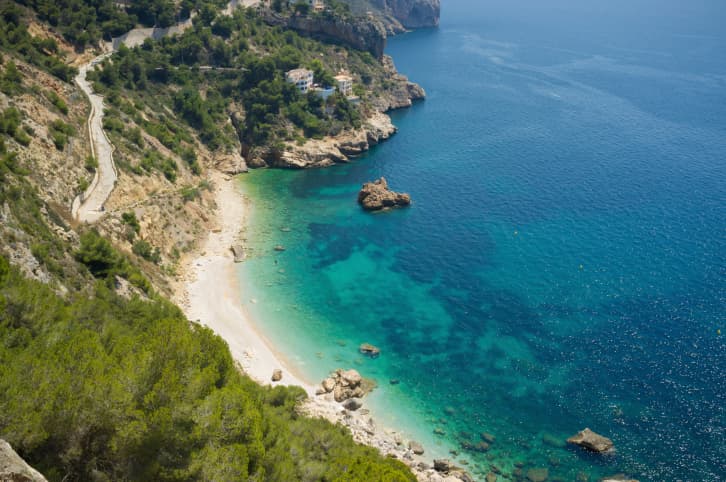 La Costa Blanca, la cual comprende la zona este mediterránea de España, es uno de los lugares más propicios para perderse entre pueblecitos artísticos, terrazas donde degustar paella y playas como esta Granadella, situada en el pueblo alicantino de Javea.