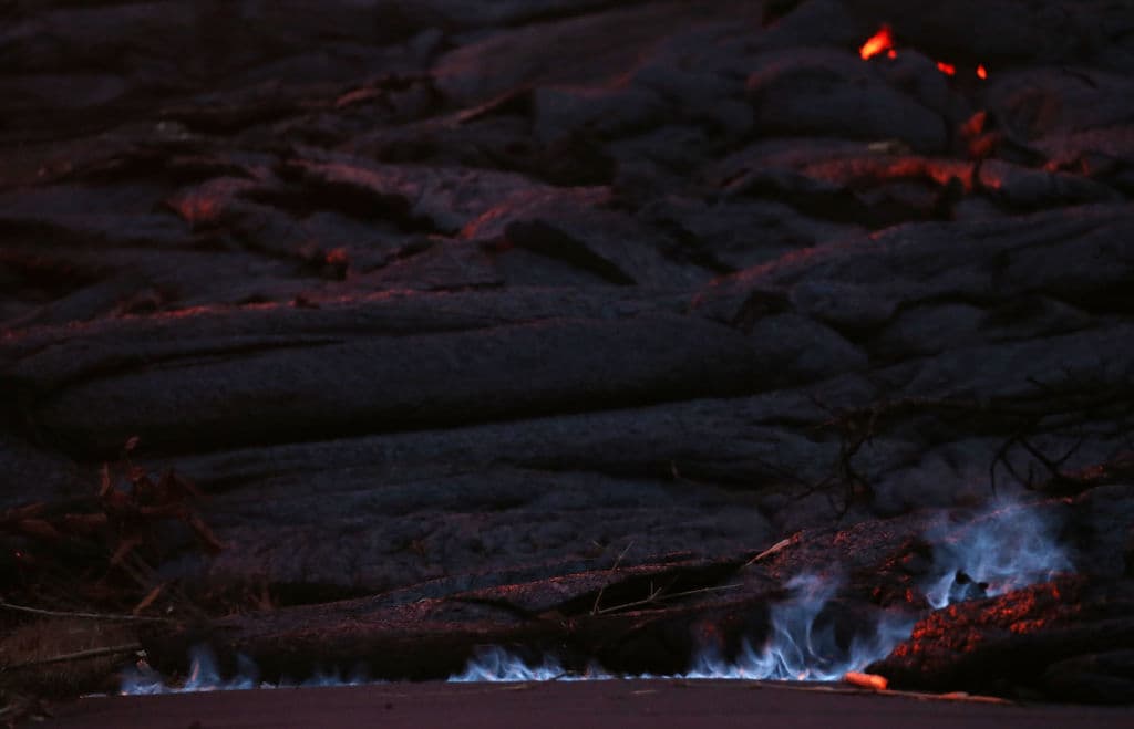 A la lava que se esparce por la isla de Hawaii se le sumó otro fenómeno: las llamas azules producidas por la quema del gas de metano, según la CNN. El metano se produjo por la quema de árboles por parte de la lava del volcán que entró en erupción hace algunas semanas.