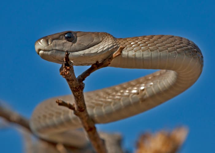 La mamba negra es la serpiente más grande de África y también la más letal, pues es extremadamente venenosa.