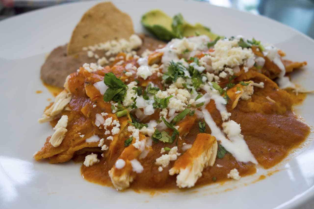 Los chilaquiles son otro de los desayunos favoritos de los mexicanos. Son totopos bañados en salsa de chile verde o roja. Se complementan con otros elementos como huevo, pollo o carne de res. Llevan crema, queso y cebolla.