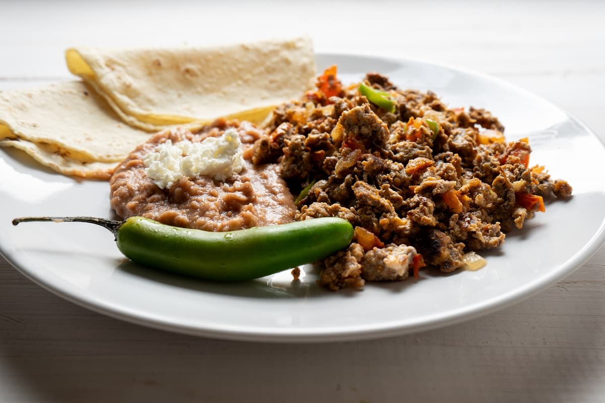 El picadillo es una comida muy presente en los hogares mexicanos. El ingrediente clave es la carne molida, la cual se acompaña con cebolla, ajo, verduras picadas, especias y chiles.