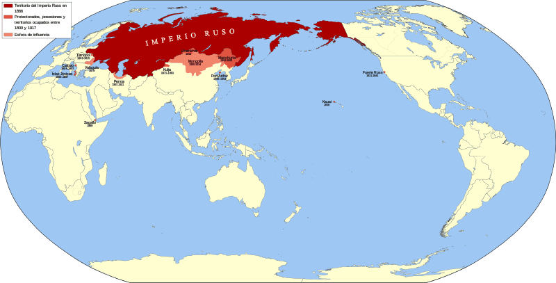 El imperio ruso duró entre los años 1721 y 1917. Es el tercer imperio más grande de la historia, con casi 23 millones de kilómetros cuadrados no contiguos entre sí. Su población era de 176,4 millones de personas, un 9,8 % de la población mundial en 1913.
