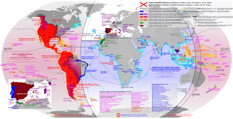 El cuarto imperio más grande del mundo fue el español entre los años 1740 y 1790. Durante dicho período el imperio español se extendía a través de 20 millones de kilómetros cuadrados de territorios no contiguos entre sí. Su población era de aproximadamente 68 millones de personas, un 12,3 % de la población mundial en el siglo XVII.