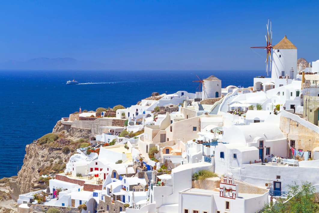 Nos moveremos con el famoso burro taxi hasta el pueblecito, desde donde descenderemos a las playas de arena volcánica (especialmente Amoudi, de acceso a pie) y tomaremos una deliciosa moussaka en alguna de las terrazas floridas del pueblo suspendidas sobre la famosa Caldera, restos volcánicas que forman la silueta de media luna de la isla. Un paseo por los típicos molinos de viento de la isla es otra de las atracciones recomendadas.
