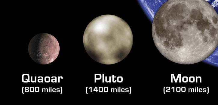 Quaoar es un cuerpo menor del Sistema Solar también perteneciente al cinturón de Kuiper y fue descubierto durante el año 2002. Su radio es de aproximadamente 550 kilómetros, lo que es comparable a la mitad del radio de Plutón, y en 2007 se descubrió que tiene un pequeño satélite.