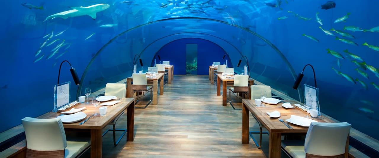 Se ubica ocho metros debajo de la superficie y ofrece una vista panorámica de 180 grados de los vibrantes jardines de corales que lo rodean. En él se sirven platos de la cocina local contemporánea con un toque europeo en un menú de cena con seis opciones.