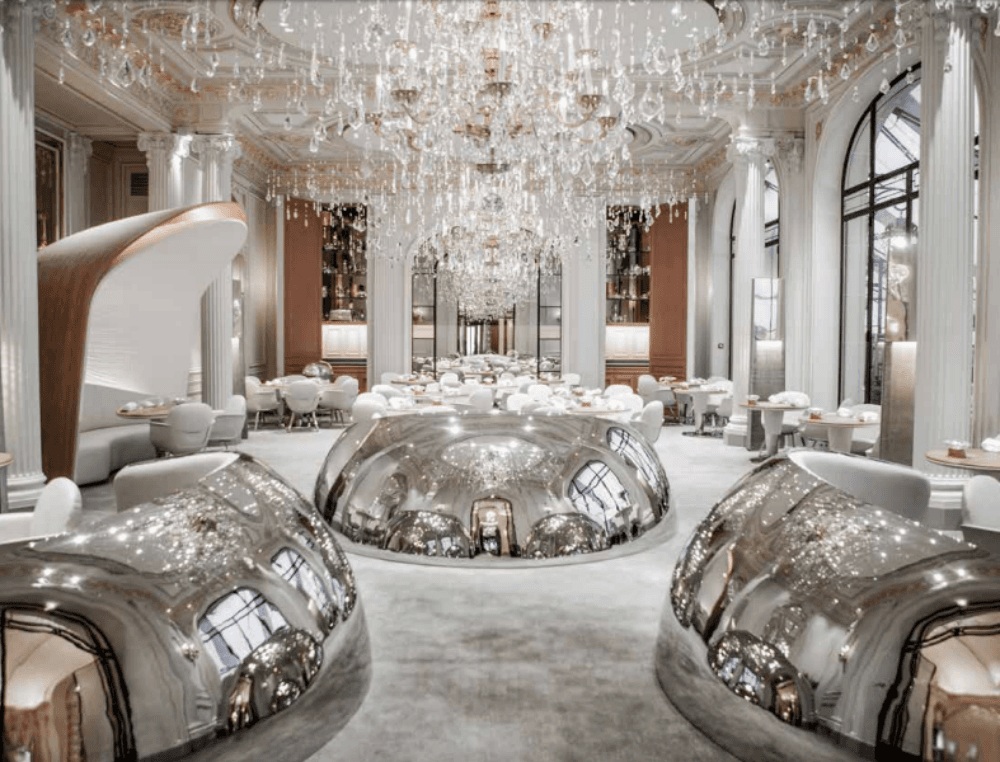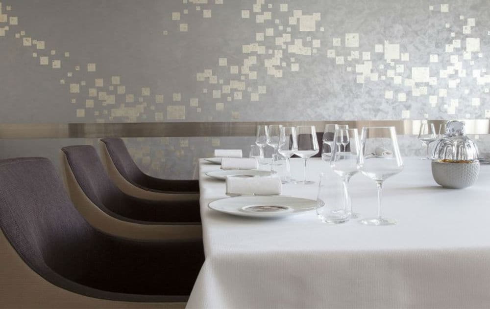 El techo de la sala que se usa para la cena está cubierto de diez mil cristales, y se volvieron a hacer los cubiertos creados en los años 1970 por Roger Tallon especialmente para el restaurante.