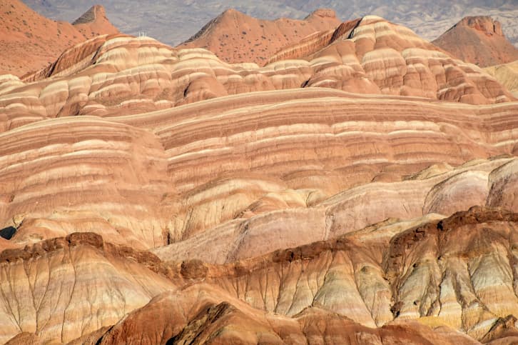 Cuando puedas apreciar estas montañas, no creerás que son reales. Su superficie tiene un efecto que hace que sus colores se dividan en capas, debido a los minerales y arenas que lo conforman hace millones de años.