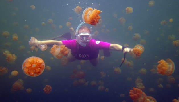 El Jellyfish lake es un lago de agua marina ubicado en Palaos. Anteriormente el lago tenía salida al océano, pero luego de que se cerró esa vía las medusas quedaron estancadas allí, y protegidas de los depredadores marinos. Estas medusas sí tienen células urticantes, pero éstas son tan pequeñas que resultan inofensivas para la piel de los humanos, por lo tanto se puede nadar en el lago junto a ellas. En 2012 el lago quedó protegido por la UNESCO como Patrimonio de la Humanidad.