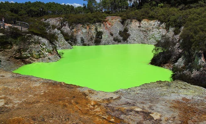 Si el diablo trata de alcanzar la tierra desde Turkenistán, el lugar donde tomaría un baño sería en Nueva Zelanda. Es por ello que al norte del país oceánico, dentro del área termal Wai-O-Tapu, existe un lago apodado El Baño del Diablo que es de color verde. Debido a la cantidad de sulfatos y sales contenidos, el lago adquiere este curioso color que contrasta con las aguas turquesa y esmeralda de los vecinos lagos del Tongariro Alpine Crossing, meca volcánica de los hikers. Estos escenarios se únen a la lista de lagos coloridos encabezada por otras bellezas naturales como el -no tan lejano- Lago Rosa, al oeste de Australia.