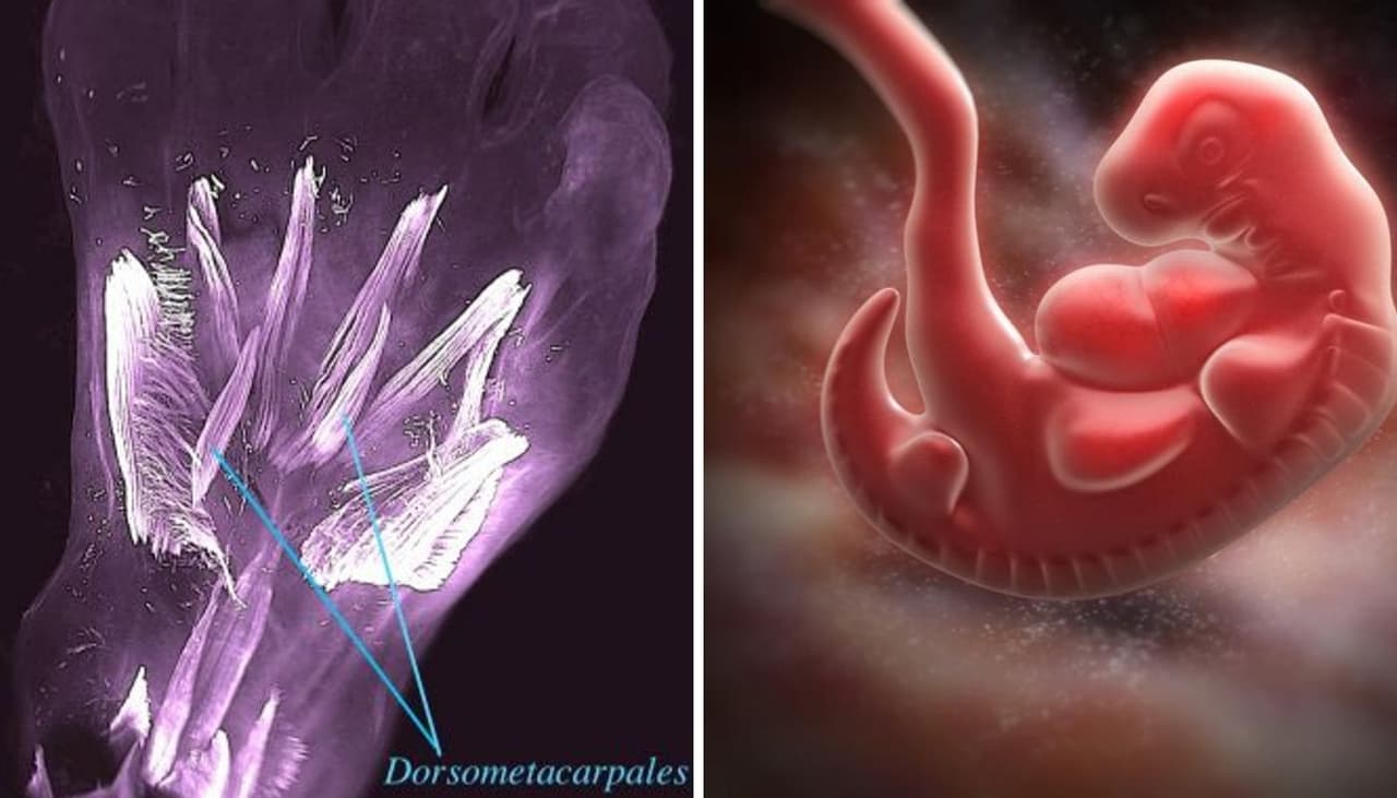 Este estudio indica que los fetos humanos poseen músculos en las piernas y brazos, de los cuales algunos forman parte del cuerpo de humanos adultos que existieron hace más de 250 millones de años.