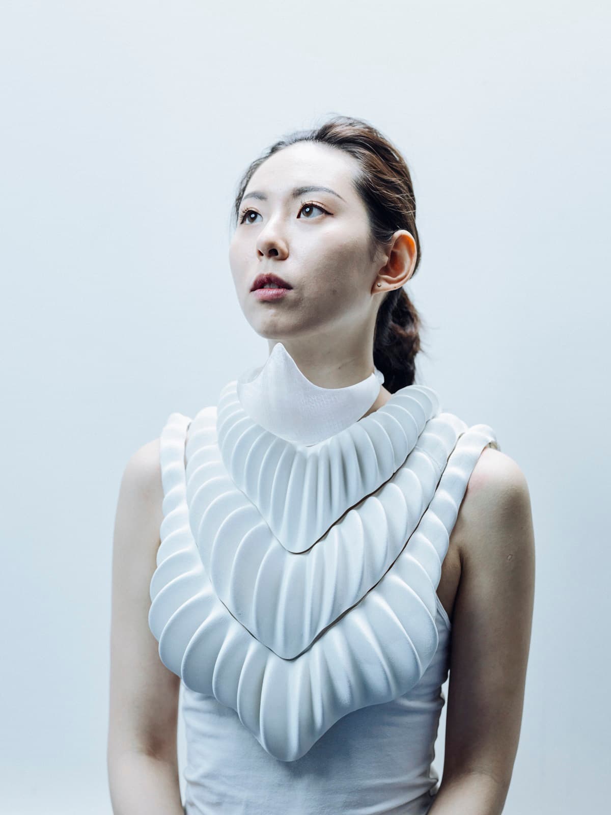 Es por eso que Jun Kamei, con el apoyo del Instituto Industrial de Ciencias de la Universidad de Tokyo, desarrolló AMPHIBIO, una prenda impresa en 3D que funciona como una branquia. El propósito de este aditamento es apoyar a la futura humanidad para su supervivencia, en un escenario en la cual las aguas marinas sobrepasaron su nivel actual e inunden las ciudades portuarias.