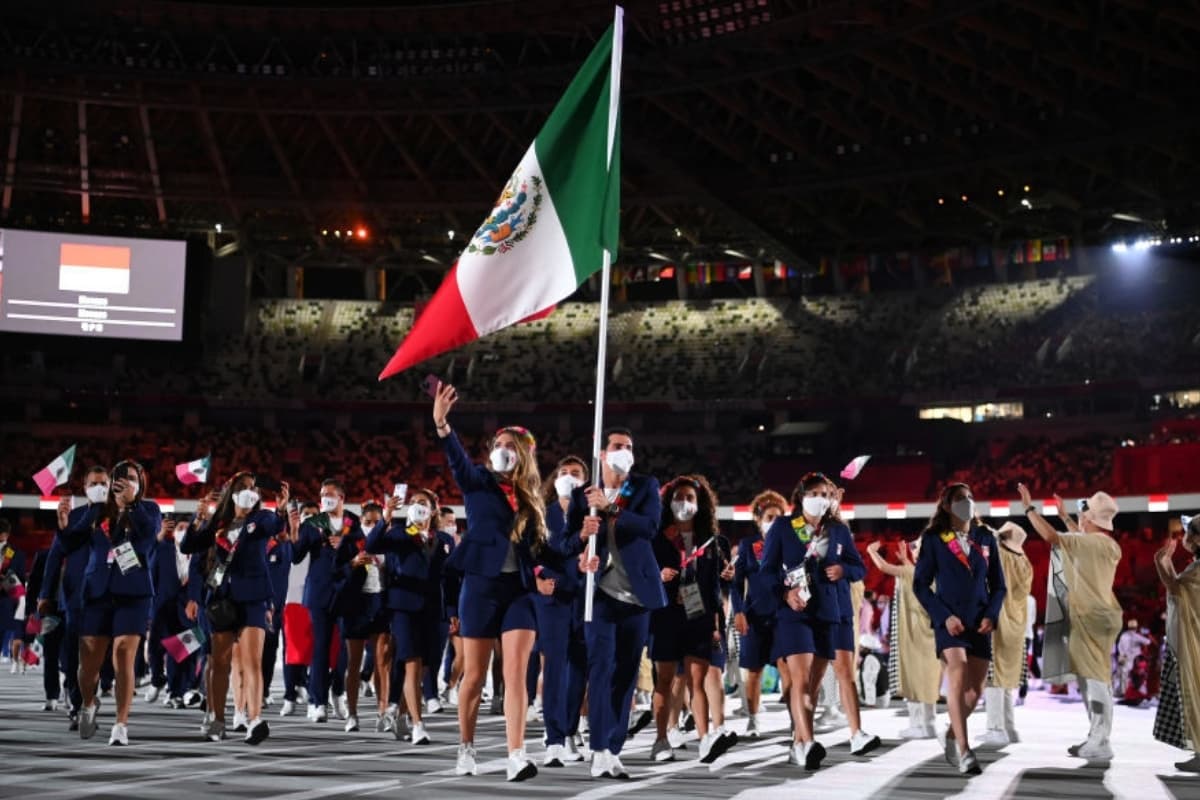 En representación de la delegación mexicana, la golfista Gaby López y el clavadista Romel Pacheco fueron los encargados de llevar la bandera cuando tocó el turno nacional de desfilar
