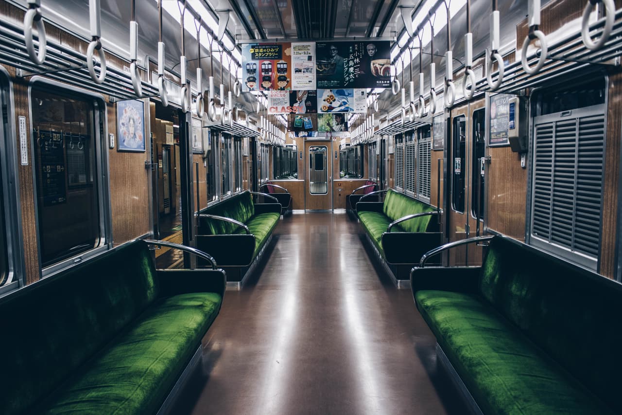 Solo por la mañana muy temprano tendrás la posibilidad de ver uno de los subterráneos tan libres y limpios como este de la prefectura urbana de Kioto.