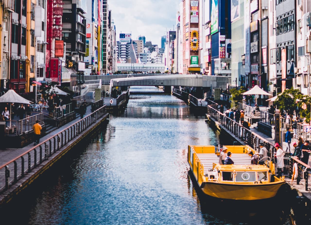 Uno de los contrastes más llamativos de Japón se producen por la iluminación y el claro choque entre un sitio visto de día y visitado por la noche. Por ejemplo, esta imagen del canal fluvial de Dōtonbori en Osaka.