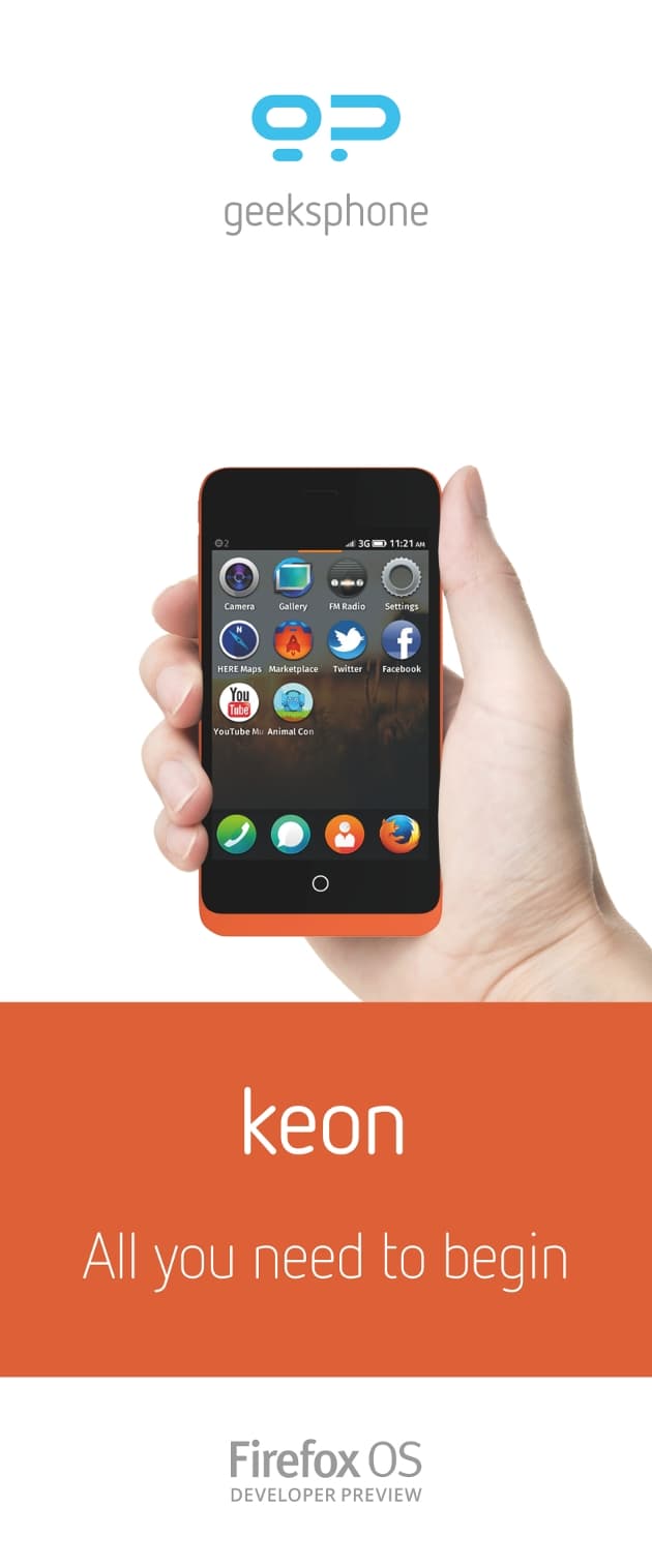 Geeksphone, una empresa de móviles española, fue la encargada de comenzar a vender la primera tanda de móviles con sistema operativo Firefox OS. Los modelos Keon y Peak ambos móviles de gama media y precio económico se agotaron en las primeras horas de venta y muchos otros usuarios ya esperan por su oportunidad para adquirir uno.