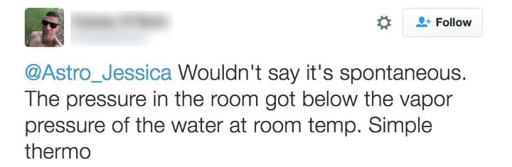 Meir decidió compartir la experiencia en Twitter, donde contó cómo a esa altura el agua combustiona espontáneamente. Esto es fascinante, a menos que seas Bart Simpson.