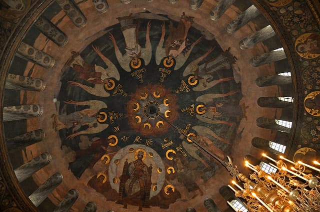 La misma cuenta con 13 fascinantes cúpulas que pueden apreciarse desde distintos puntos de la ciudad debido a su gran altura y su diseño singular en colores verdes y dorados muy llamativos.