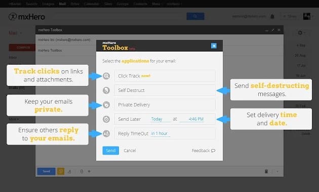 Así, te encontrarás con un montón de funciones que evitarán la necesidad de recurrir a servicios de terceros. Entre las nuevas herramientas que gana Gmail con mxHero Toolbox, están.