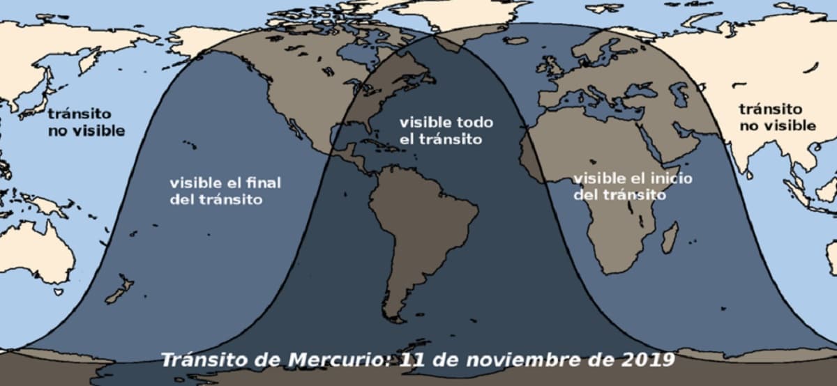 Este evento se podrá presenciar en América, Europa, África y Asia Occidental. Este tránsito se podrá observar en su totalidad en las Islas Canarias al igual que en México, principalmente en la zona sur, mientras que en el resto del país sólo se podrá ver la parte final del recorrido de Mercurio.