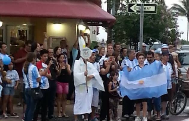 Otros tantos se congregaron también en 'la pequeña Buenos Aires' en Miami Beach, donde se disfrazaron incluso de Papa por el Papa Francisco, primer Pontífice de América quien es Argentino.