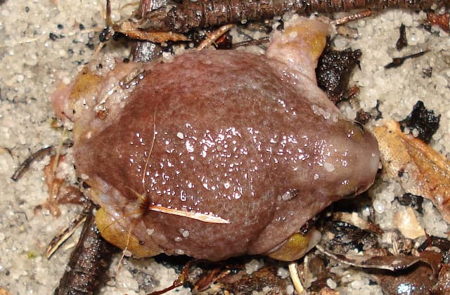 La rana púrpura es nativa de la India y vive la mayor parte del año debajo de la tierra comiendo termitas, salvo las dos semanas de monzones en las cuales sale a la superficie. Sin embargo no le es fácil, debido a que su cuerpo está diseñado para estar bajo tierra.