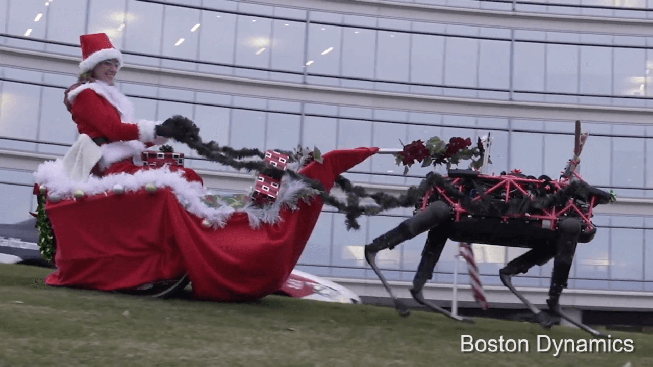 Para darles un descanso, la gente de Boston Dynamics, compañía perteneciente a Google, decidió modificar su robot estrella y darle forma de reno para que tire el trineo de Papá Noel está navidad sin requerir de leche, galletas y agua para volar toda la noche.