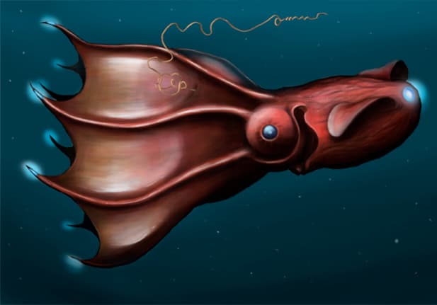 No es una amenaza para los humanos, pero son sus características las que sorprenden. Cuentan con órganos que producen luz y se llaman fotóforos, los cuales son más fuertes en las puntas de sus brazos y aletas. A diferencia de otros animales parecidos, no puede cambiar de color, pero no le es necesario en las profundidades.