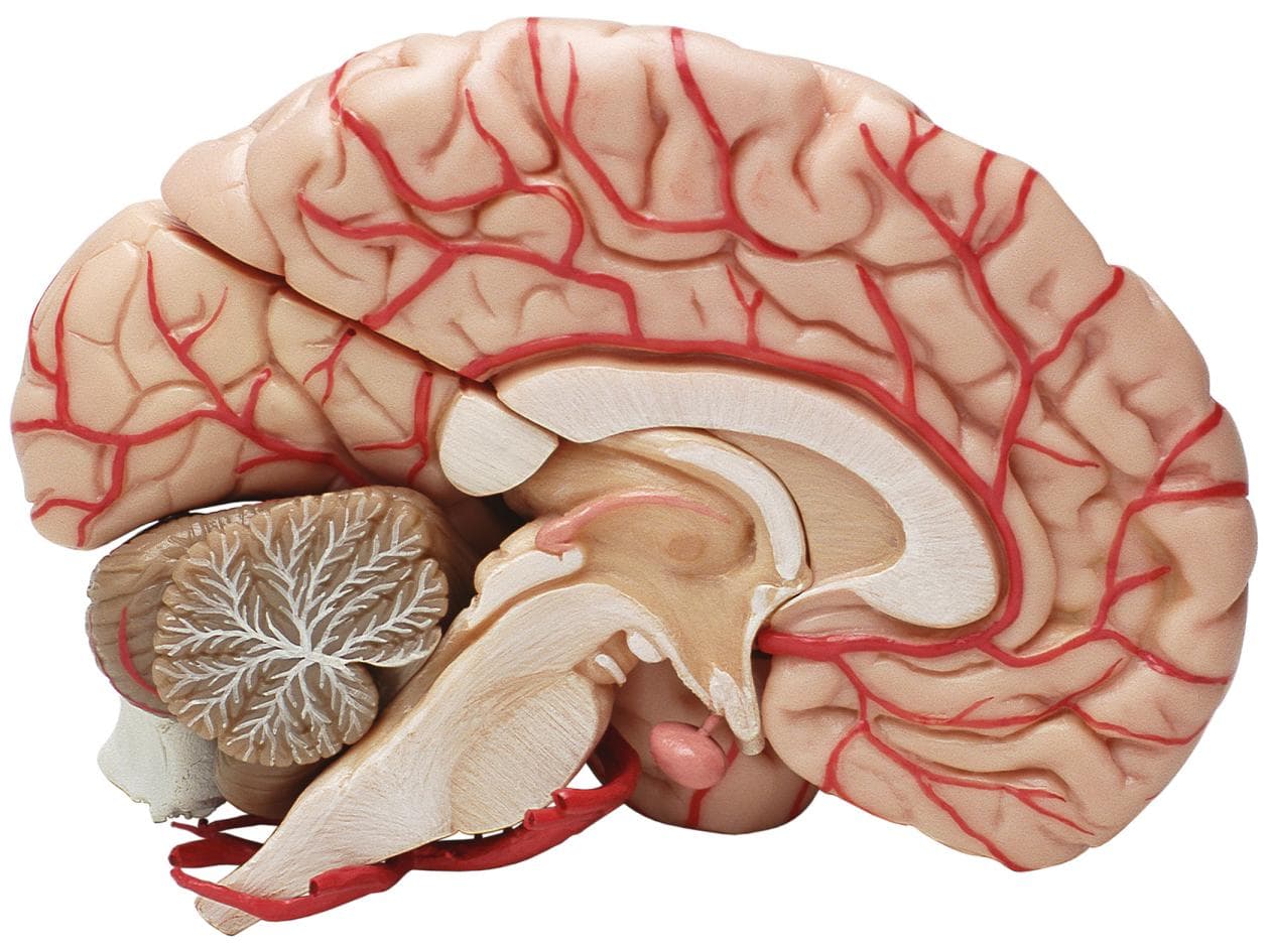 Falso. El cerebro no es completamente gris como se lo muestra en la televisión, también tiene tintes blancos, rojos y en ocasiones, negros. La gente se refiere a menudo al cerebro y le da un color grisáceo, por ejemplo, el detective Poirot de las historias de la famosa escritora británica Agatha Christie, quien siempre habló de las “pequeñas células grises” en alusión a la materia gris del cerebro. Las historias de misterio de la señora Agatha son sensacionales, pero lo cierto es que la materia gris, que está en el cerebro y en la médula espinal, no es la única de color allí. El cerebro también tiene materia blanca, con fibras nerviosas que la conectan a la gris, sangre, que le da un tono rojizo y la llamada “ substantia nigra” que en latín (sí, claro, adivinaste) significa “sustancia negra”. Ésta sustancia es negra porque contiene neuromelanina, que le da pigmentos a la piel, el cabello y demás, todo eso le da diferentes tonos al cerebro.