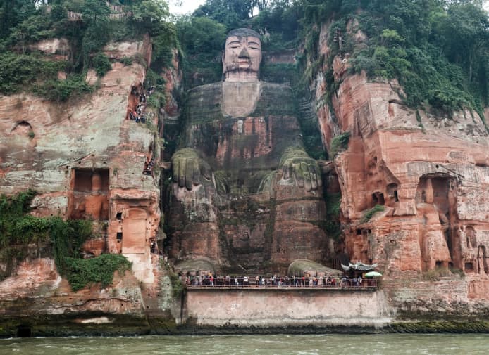 Gran Buda de Leshan. Construida durante la dinastía Tang, es la escultura en piedra de Buda más alta del mundo. Se encuentra en la provincia china de Sichuan y nos contempla desde una altura de 71 metros.
