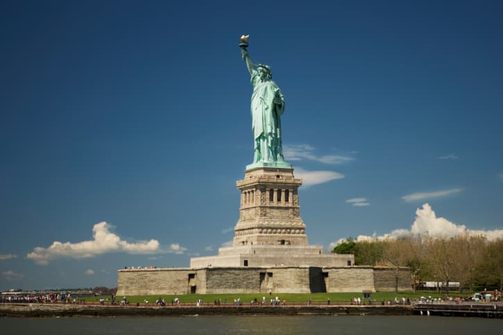 El monumento se eleva sobre la ciudad de Nueva York, con una altura de 93 metros desde el suelo hasta la antorcha.