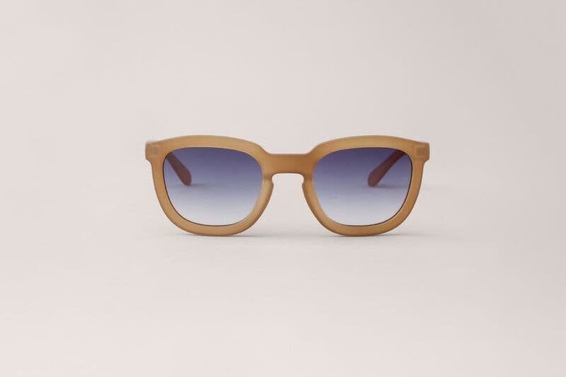 Matte Olive modelo Lemarais con lentes azules en degradé