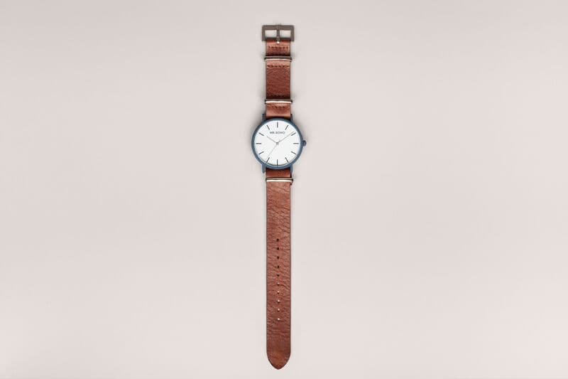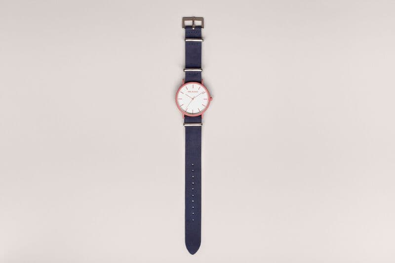 La marca también cuenta con una línea de relojes que se dividen en tres grandes grupos: metálicos, de cuero y gomato. Este último consiste en una caja de goma, con dos correas intercambiables, una de cuero y otra de tela. Una tendencia original que ofrece dos relojes en uno.
