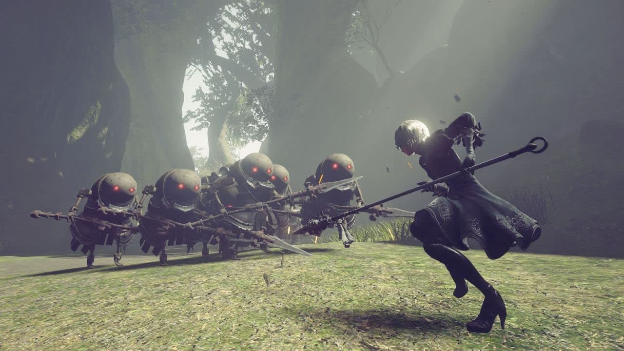 NieR: Automata combina la modalidad RPG con la acción a través de un personaje androide que se desplaza por un mundo abierto en el que libra batallas contra máquinas creadas por extraterrestres.