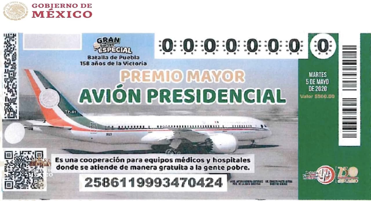 Después de asumir el cargo, el presidente ha intentado negociar la venta del avión y, para que no dijeran que ‘no sale ni en rifa’, una de las ideas para venderlo fue hacer, justamente, una rifa a través de la Lotería Nacional.