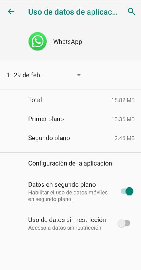 Ahí elige Whastapp y escoge el uso de datos de la aplicación.
