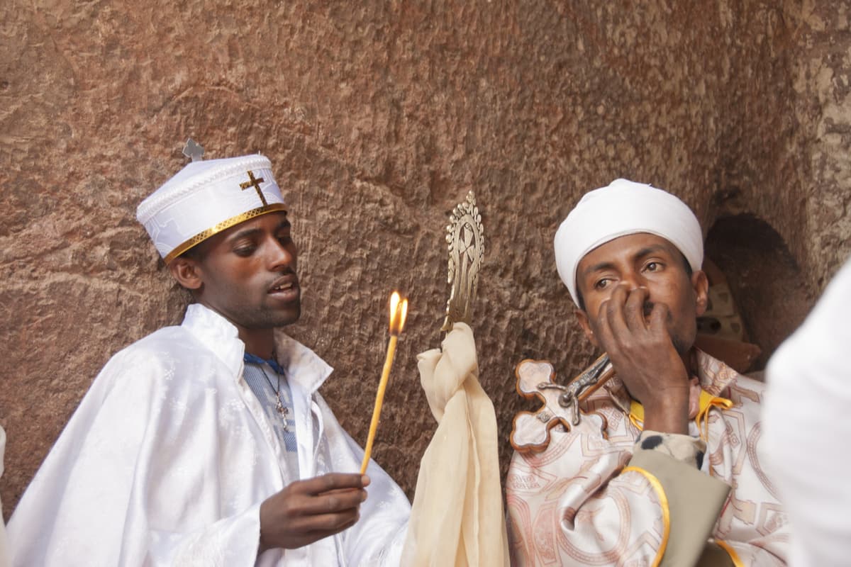 La celebración en Etiopía se lleva a cabo el 7 de enero en lugar del 25 de diciembre. La gente hace ayuno un día antes del festejo y por la mañana acuden a la iglesia vestidos con una túnica blanca llamada shamma.
