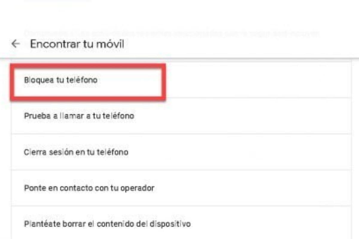 Google ofrece diferentes opciones como hacerlo sonar para encontrarlo en los alrededores o ver su ubicación en caso de que esté perdido y también aparece la opción ‘Bloquea tu teléfono’.
