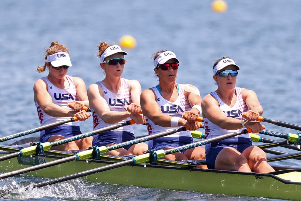 En el cuádruple scull hay cuatro competidores con dos remos cada uno. El equipo de Estados Unidos está conformado por Ali Rusher, Cicely Madden, Meghan O’Leary y Ellen Tomek.