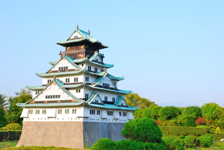 La principal pieza arquitectónica en Osaka es precisamente el Castillo de Osaka. Este castillo fue construido a partir del 1580 sobre las ruinas de un templo fortificado, luego de que tras cuatro años de sitio Oda Nobunaga lograra vencer a una secta budista que residía en el templo. El castillo ubicado en medio de la ciudad es un clásico ejemplo de la maravillosa arquitectura nipona.