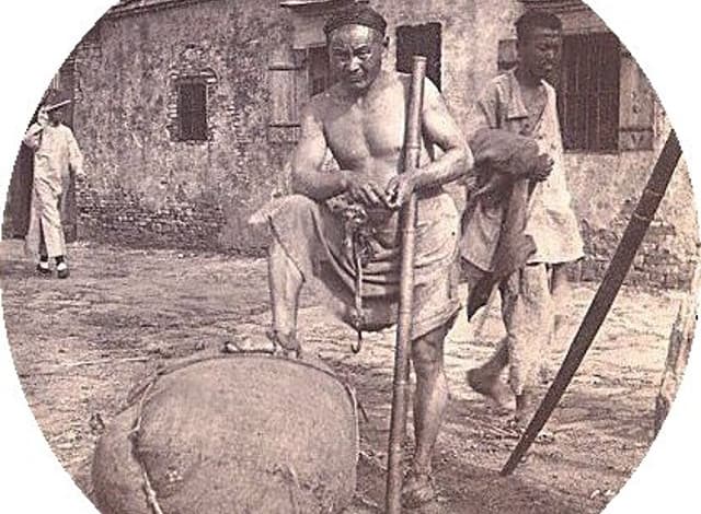 La esclavitud comenzó en China cerca del 2100 aEC, con la necesidad de obtener mano de obra barata para la agricultura. Los esclavos trabajaban hasta quedar al borde de la muerte y si su amo moría eran enterrados con él para servirle en la otra vida. Esta práctica duró hasta el 221 aEC, cuando se empezó a enterrar figuras de terracota en lugar de personas reales. En el siglo VII comenzaron a llegar esclavos negros, debido al comercio árabe. La esclavitud fue abolida en 1906, pero hasta 1950 existían esclavos en algunas regiones remotas de las montañas.