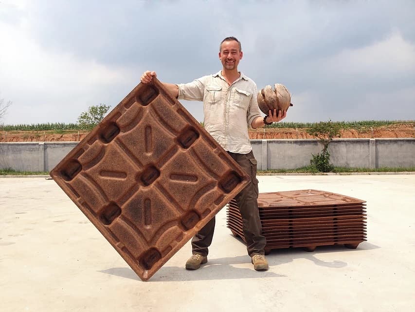 Estos palets son el resultado de una sociedad entre la Universidad de Wageningen y la empresa CocoPallet. Para lograrlo, los investigadores reprodujeron la antigua técnica indonesia de aglutinar la corteza del coco.