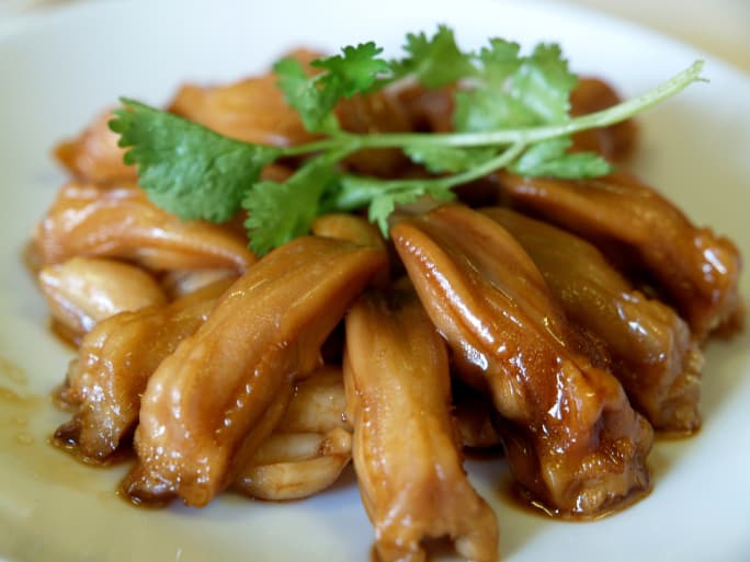 Lengua de pato. Es una de las especialidades de la ciudad de Hong Kong, que comúnmente se sirve con apio.