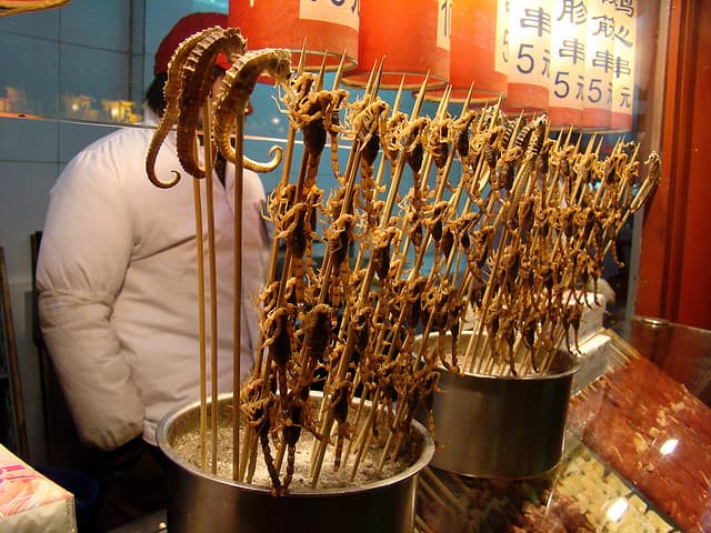 Hipocampos. Los chinos se alimentan de caballitos de mar fritos. Les resulta una delicia, pues son difíciles de encontrar.