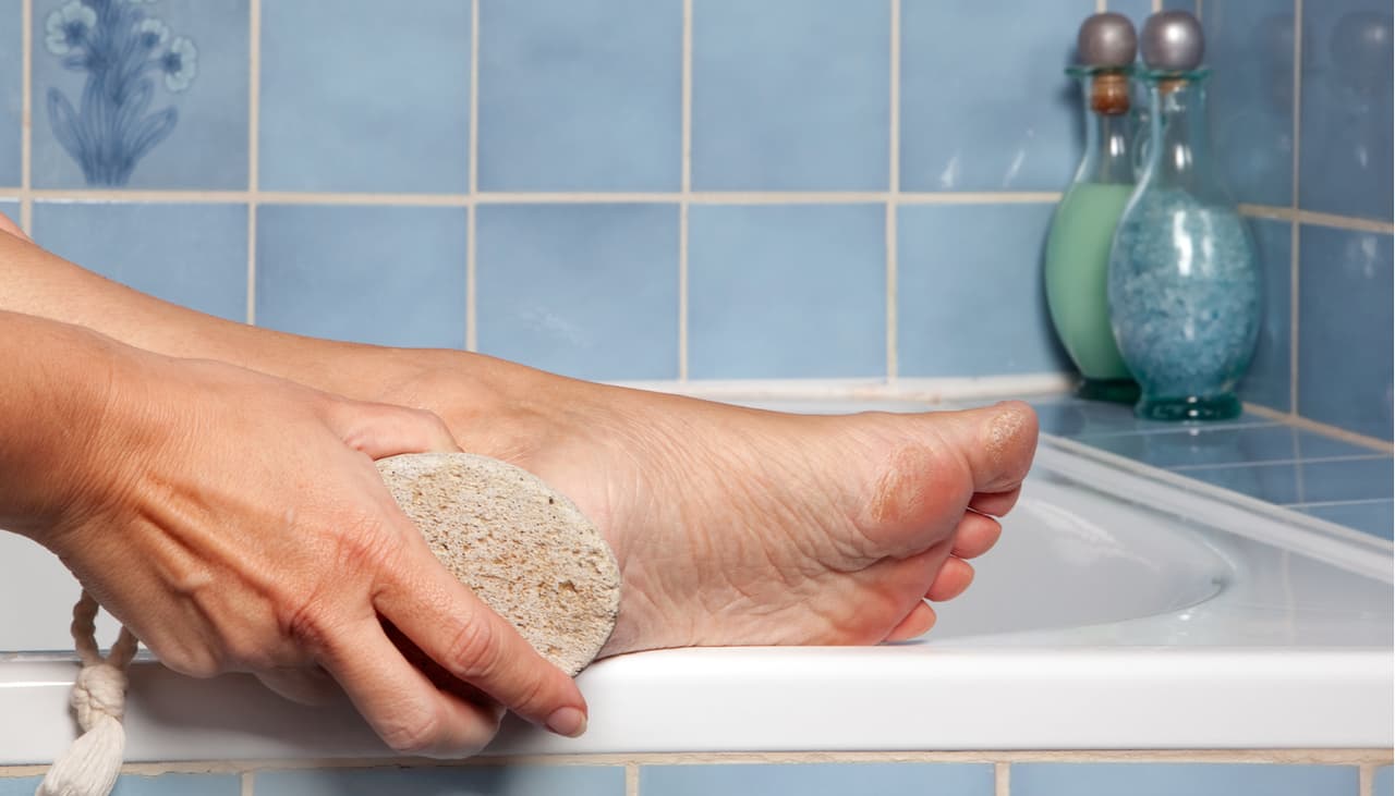 Lava tus pies a diario con agua tibia. Asegúrate de secarlos completamente y usa piedras exfoliantes para eliminar las callosidades.