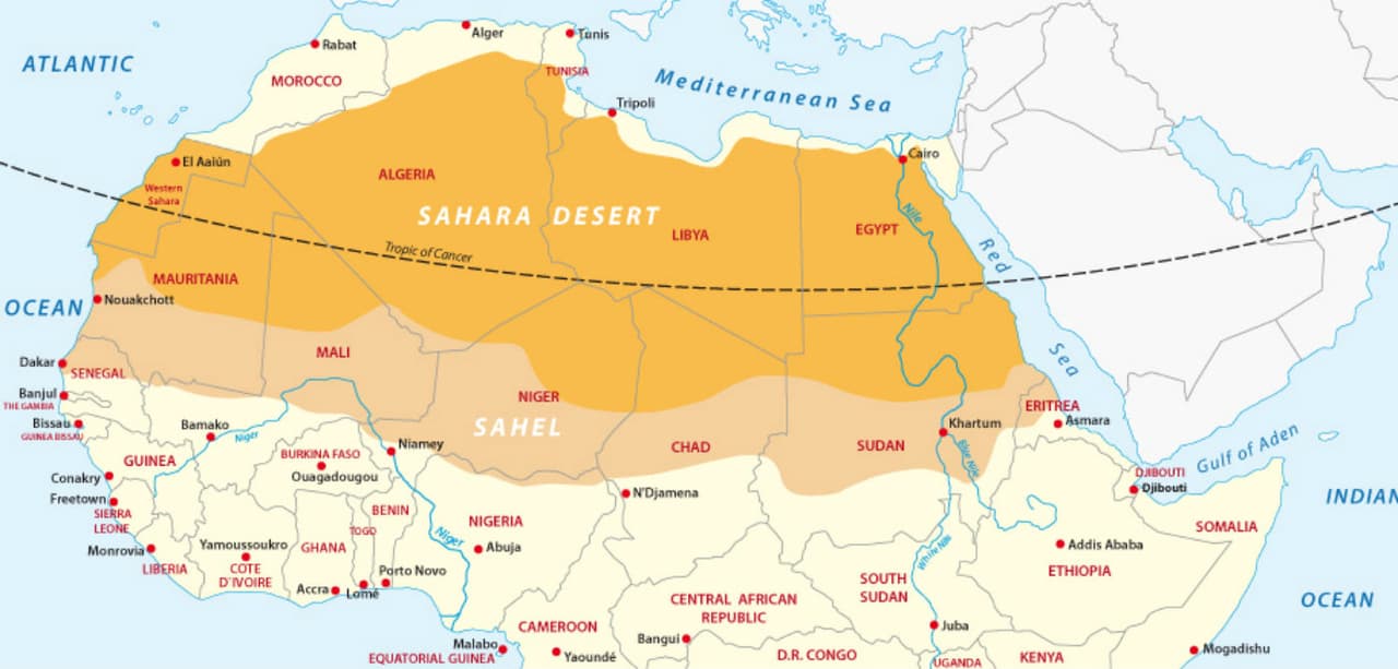 La región de Sahel es una franja que corta el continente africano de este a oeste y pasa por más de una decena de países. El lugar es lindero con el desierto de Sahara y sufre los impactos producidos por el cambio climático y la falta de recursos naturales.